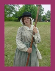 Flora Roth is known internationally for her book on historical character portrayal, Past Into Present: Effective Techniques for First-Person Historical Interpretation (University of North Carolina Press, 1998). She has charmed audiences at hundreds of libraries, historical societies, and women's clubs with her multi-faceted anecdotal lecture-demonstration "Totally Tea: An 18th Century Tea Experience". In "Over Here Molly Pitcher: Stories of a Woman of the Army in the American Revolution", she relates tales of a camp follower on the march, enduring encampments, and in the heat of battle. "The Distaff Muse" blends readings, songs, and anecdotes relating to Colonial women. Ms. Roth's newest program, "Soldiers Without Guns: Women Defense Workers of WWII," combines first-person storytelling, homefront objects, and a family story-sharing session with the audience.